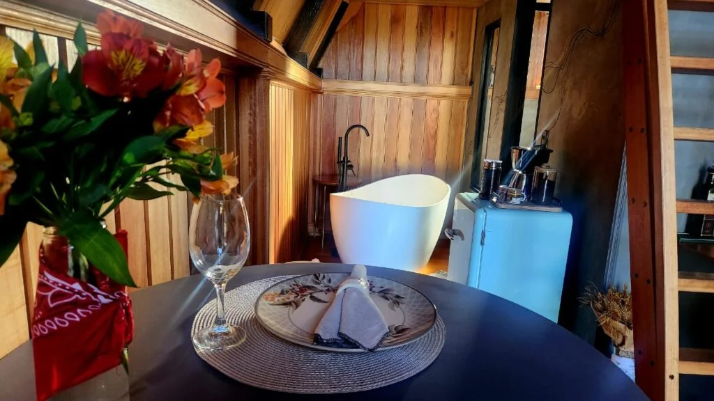 Apesar de contar com apenas dois chalés, o que já revela sua proposta de exclusividade e privacidade, a estância oferece uma experiência completa e surpreendentemente bem equipada. Cada chalé é um ninho de conforto, provido de geladeira, aquecedor, máquina de café, air fryer, televisão e outros detalhes que garantem que nada falte.